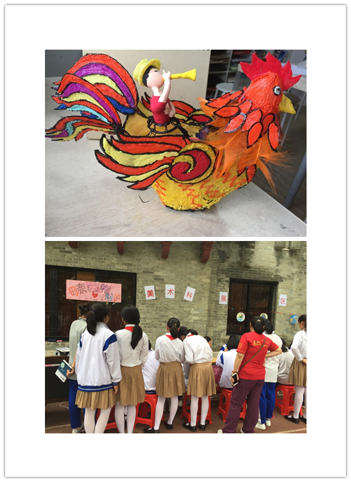 科技节展示的3D笔绘画作品,是美术创意工艺社团的同学们,围绕经典文化、趣味动物造型、以及广府文化主题等,进行立体雕塑制作的作品。