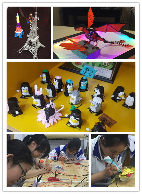 这是创意素描社团为科技节准备的活动之一,也是初一级课堂教学的成果展示。这些立体模型获奖的作品是从初一级两百多件作品中精挑细选出来的,而3D立体画是由各班自主挑选四位同学代表本班参加本次的活动。3D立体画是同学们自由创作产生,立体模型作品的灵感来自于上个学期的科幻画作品——《智能家居》,这次活动旨在让同学们切身感受由平面图像向立体的模型的转变过程;体验平面图形与立体图像之间的联系。不管是立体模型还是3D绘画作品都在考验着同学们的创造力与想象力,专注力与耐力。从小组协商、定稿、画图到修改完工,每一步需要投入很多的时间和精力,仅靠课堂上有限的时间是远远不够的,很多同学都是利用了自己宝贵的课余时间完成的。在这里的每一件作品都凝聚了同学们的智慧与汗水!