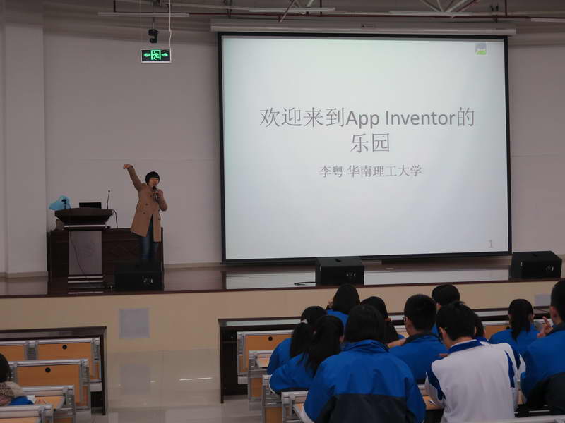 2015年12月10日,“华侨文化”特色课程《大师讲堂》举行第三场“科技之星”导师团进校园活动。我校邀请了华南理工大学李粤博士为大家作讲座《App Inventor》。李粤博士用简单有趣的实例“侨中欢迎你”和“打地鼠”两个例子展示了手机软件开发的过程和方法,并渗透了debug和模块化计算思维,激发了同学们开展创意应用开发的兴趣。在李粤博士的风趣幽默的教学语言感染下,同学们积极投入到教学活动中,并于李博士开展了互动交流。在座的师生们给予李粤博士讲座充分的肯定和赞许。通过这次讲座,同学们了解到使用计算机可以改变自己的生活和学习方式,拓展了视野,提高了信息素养。