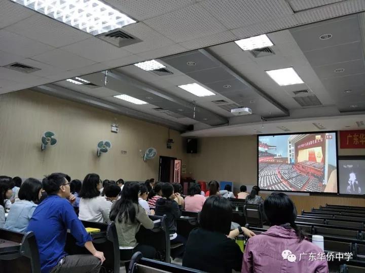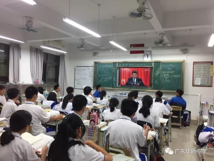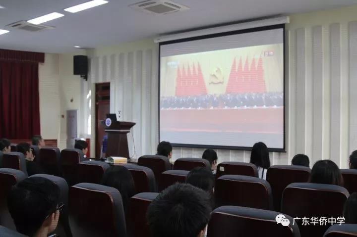 广东华侨中学全体师生热切关注十九大,两校区分别组织全体教职工集中收看十九大开幕会直播,组织学生观看十九大开幕会新闻报道,广大师生认真聆听习近平总书记的工作报告。大家怀着喜悦而激动的心情,共同亲历这一神圣而又庄严的时刻。校园内、办公室、食堂里处处可见师生自发的讨论、交流,对盛会的召开高度关注,每个人都深受鼓舞、倍感振奋。