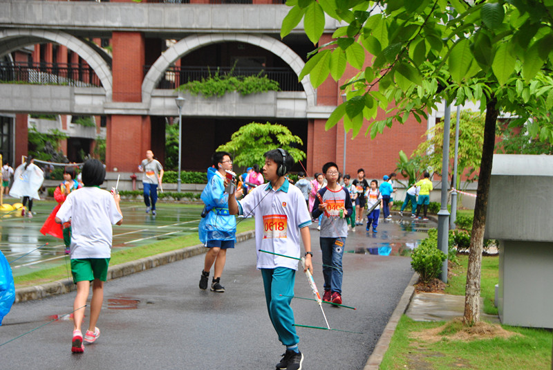 2017 年5月7日早晨,大雨倾盘,但来自广州市十一个区的1200多名学生已经整装待发,齐聚在广东华侨中学高中校区等候检录。9:30分,天公作美,雨势减弱,全国青少年无线电测向锦标赛广州预选赛正式在广东华侨中学高中校区拉开序幕。参赛学生像“谍战剧”中的特工一样,手拿着无线电设备,带着耳机,一边淌水跑,一边竖起耳朵扑捉滴嗒、滴嗒的电波声,按特定的顺序寻找电台,可谓是分秒必争呀。