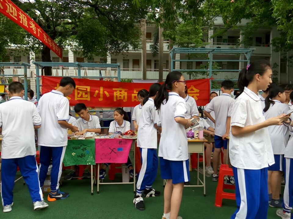 在2015年学校科技节中,为弘扬科学精神,树立环保、创新意识,培养学生勤动手、善动脑、爱科学、乐创造的科学素养,展现华侨文化特色课程理念,政治科围绕“创新创业 科技惠民”的主题,设计符合学生特点的“校园小商品交易会”活动,增强学生的经济、消费意识,培养与人交往的能力,提高学生在智慧生活方面的实践能力,提高的学科核心素养和综合素质。