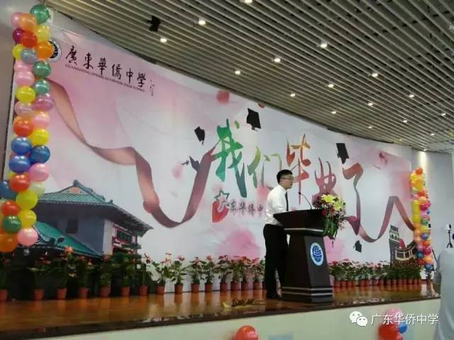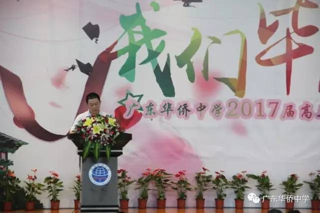 2017年6月10日,广东华侨中学2017届高三毕业典礼在高中校区图书馆学术报告厅隆重举行。校长李子良,党委副书记黄靖彬,副校长黄育英、陈旭东、朱国璋,杰出校友刘正光博士,全体高三师生、家长近千人欢聚一堂,共同见证这一荣耀时刻。